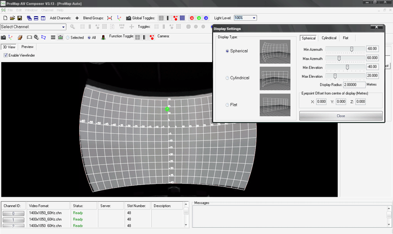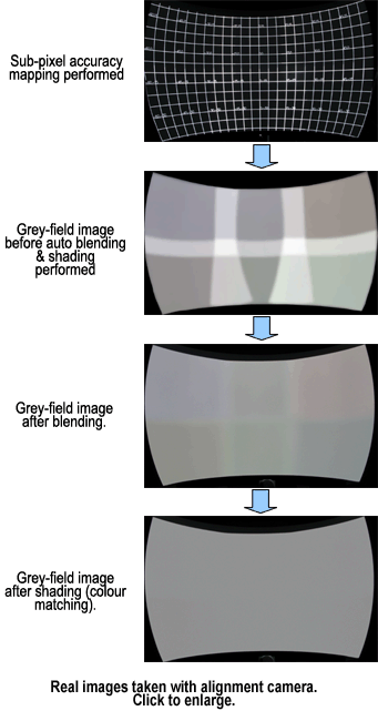 ProMap Auto TM is not limited to a specific display or display type. It may be deployed within almost any display system, from full and partial dome displays, to a wide range of other display formats using both front and rear projection. The automatic process is not just much faster, but tests have shown that the calibrated result is of superior quality than can be achieved by hand. Full projector resolution is maintained throughout blending areas. The result achieved by using ProMap Auto TM is so precise that the image on the whole display surface is truly continuous and uniform.